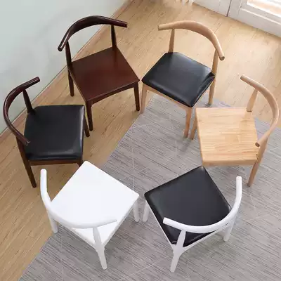 Solid wood horn chair stool backrest chair Dining chair Household bedroom study living room Simple light luxury desk dining table chair
