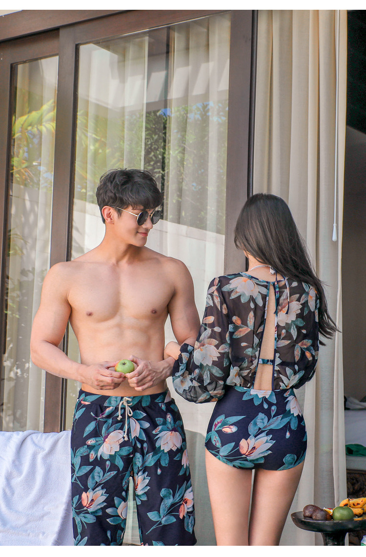 2020 new couple beach spa swimsuit South Korea Lieven body bikini long sleeve sunscreen is thin and conservative