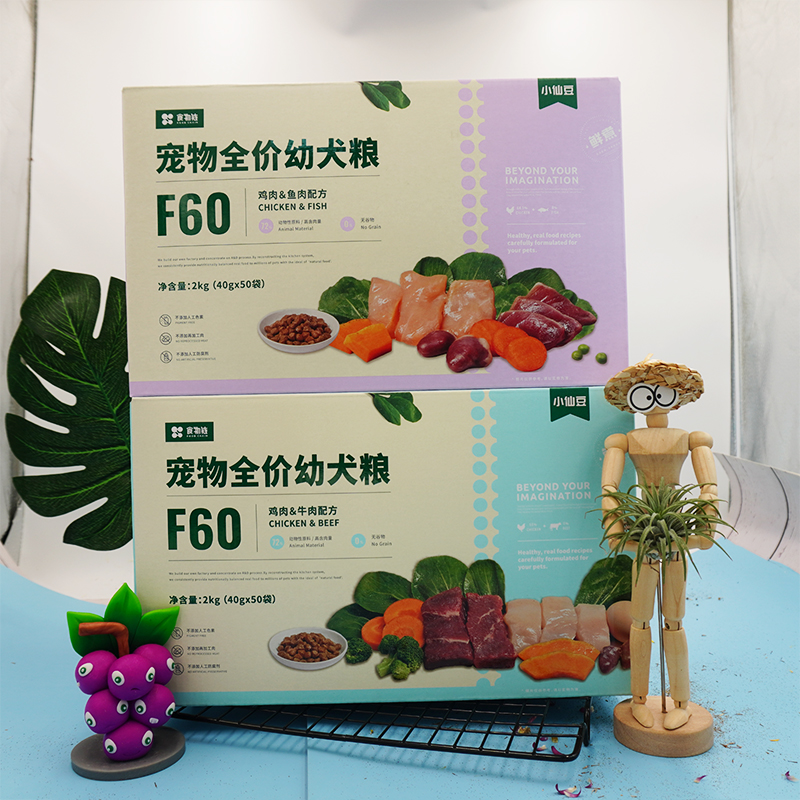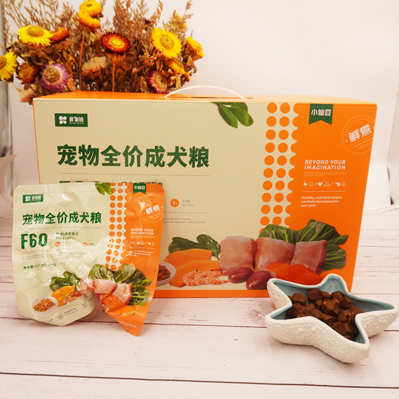 Food chain Xiaoxiandou F60 low-fat fresh boiled dog food full price adult dog dog food non-puffed chicken fish meat 3kg