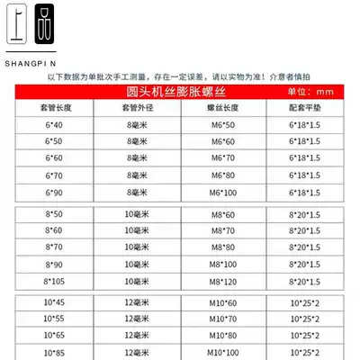 M6 * 50(5) (8mm hole) M6 * 60(5) (8mm hole) M6 * 70(5) (8mm hole) m6 * 80(5) (hit 8