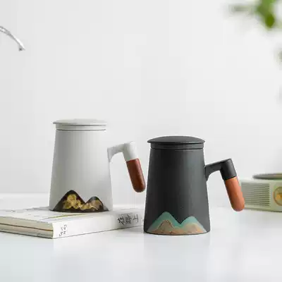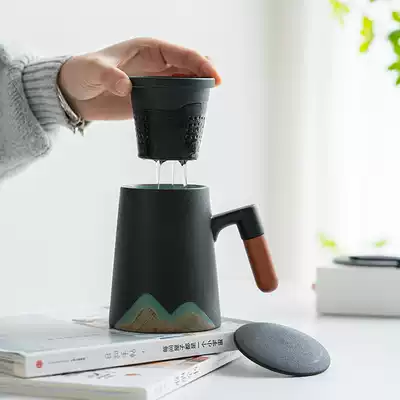Mug large capacity Office water cup tea cup tea separation Cup ceramic with lid personal custom logo