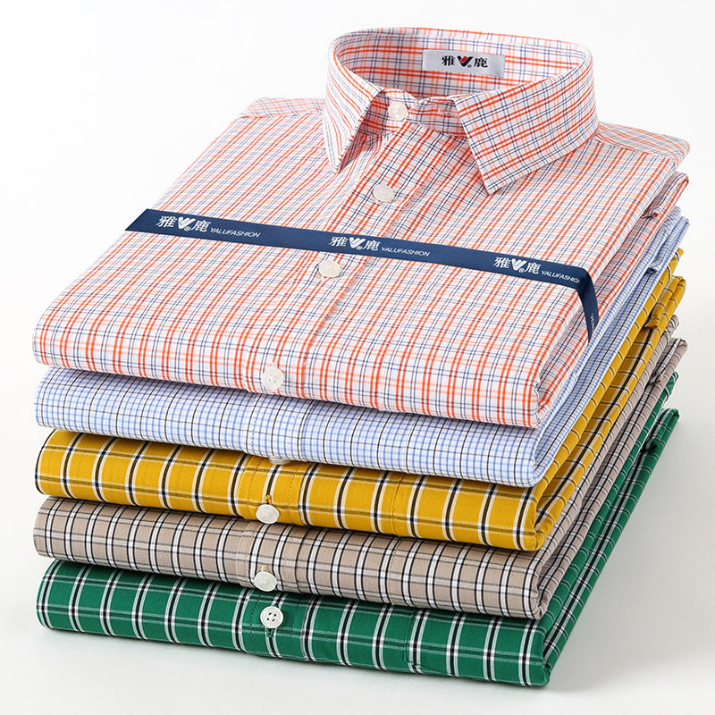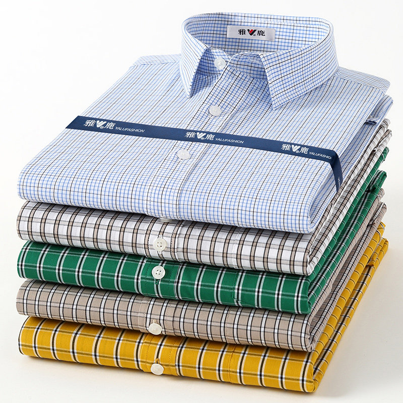 Yalu shirt men's long-sleeved spring and autumn models inner wear inch shirt plaid shirt Korean style trendy handsome spring Hong Kong style jacket