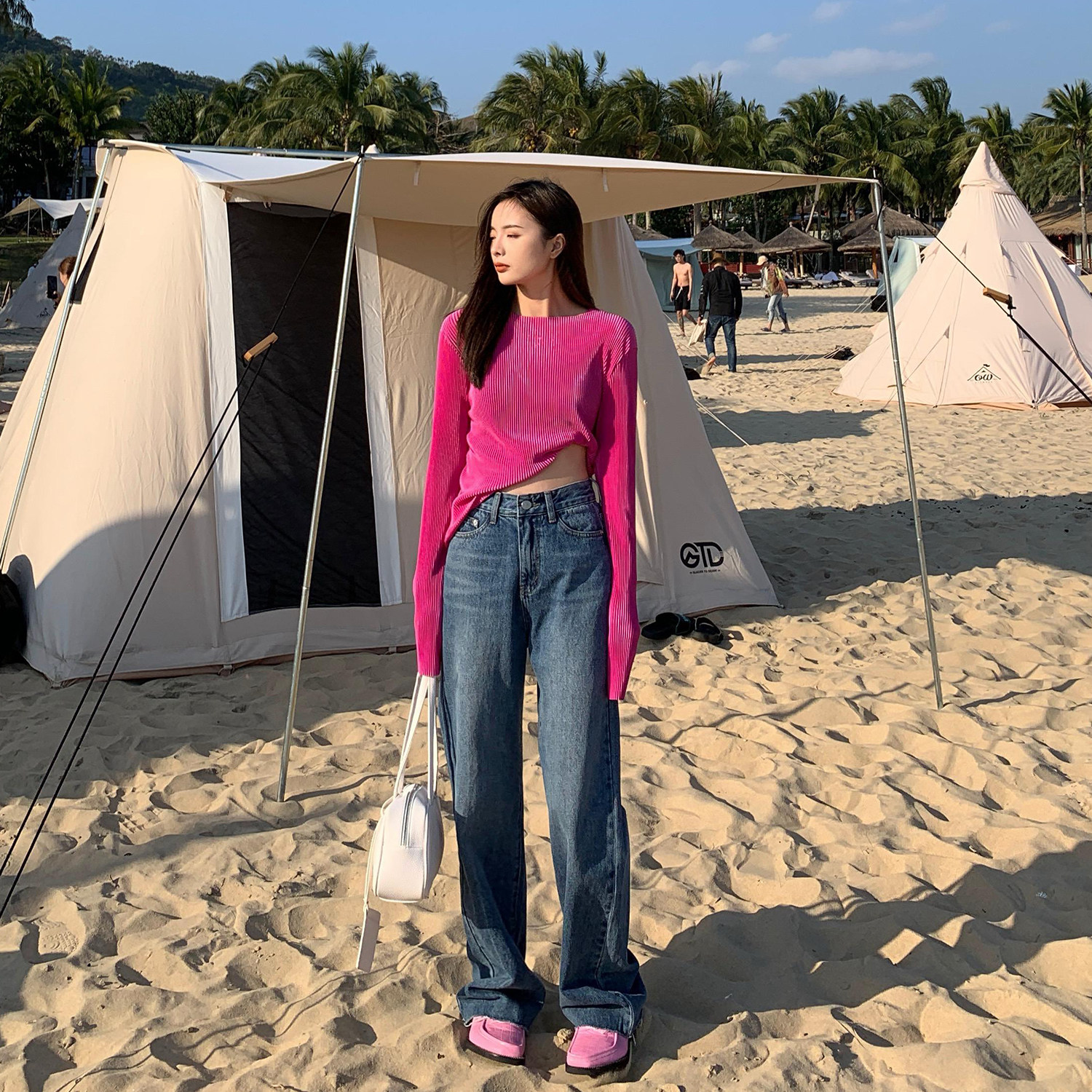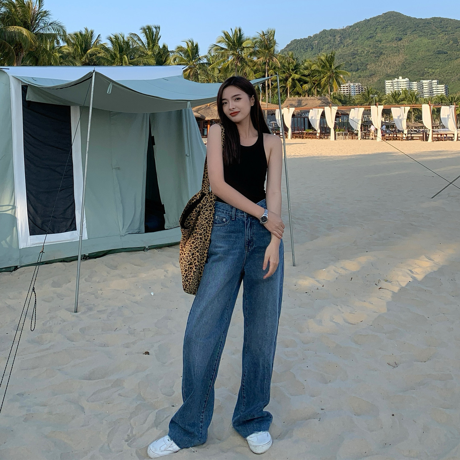 Chen Mifan blue wide-leg jeans women's summer 2022 high-waisted straight-leg pants, loose and thin, sagging, mopping trousers