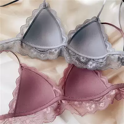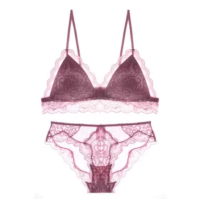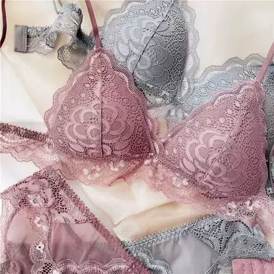 French women's bra deep V thin triangle cup gathered sexy lace without steel ring soft and comfortable underwear set