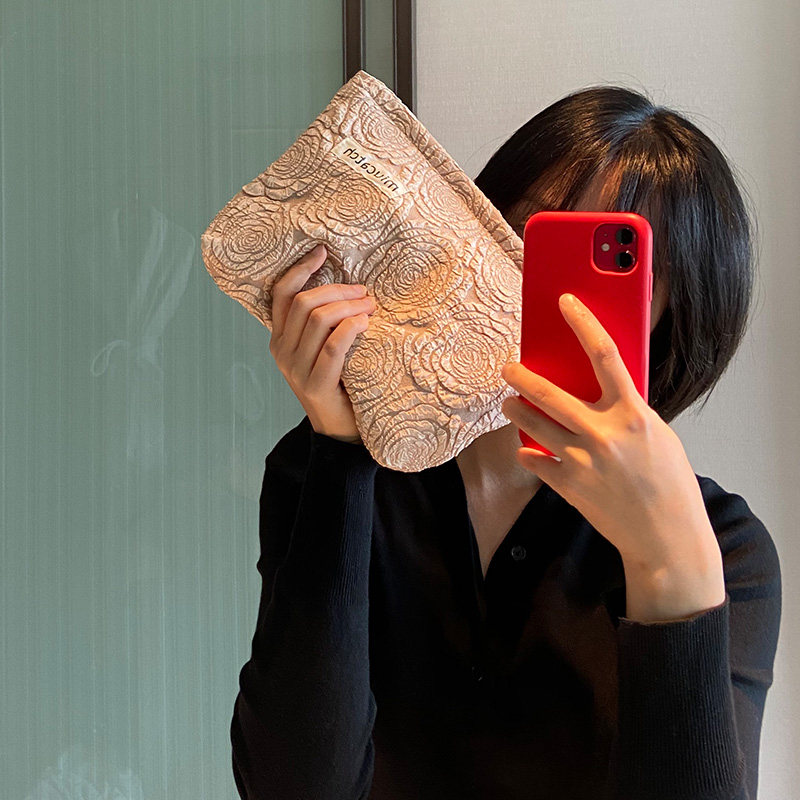 Beauty picking rose pattern makeup bag pink rose gold skin care products storage finishing bag travel portable large capacity women
