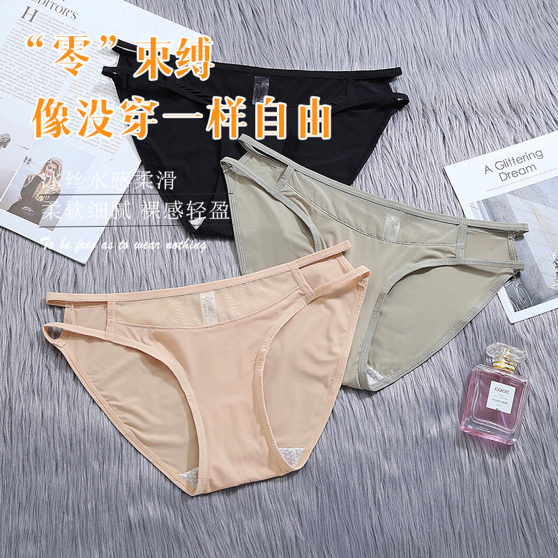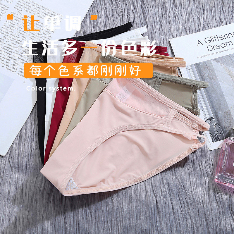 4 packs of indelible underwear female ice wire sexy cotton grade lady ultra thin silky large size fat mm low waist triangle pants