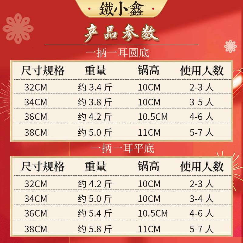 32CM round bottom (pure pig iron, uncoated) without cover, gift, 10-year warranty 32CM flat bottom (pure pig iron, uncoated), without cover, gift, 10-year warranty