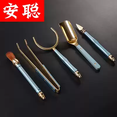 Japanese pot pen kung fu tea set brush color aluminum pure copper tea sweeping tea brush does not lose hair tea set accessories tea tray brush