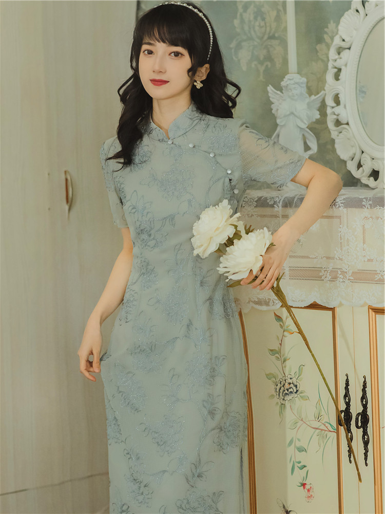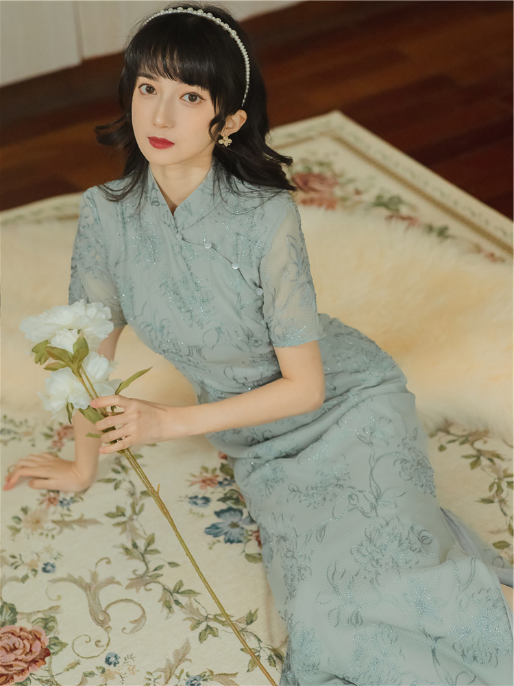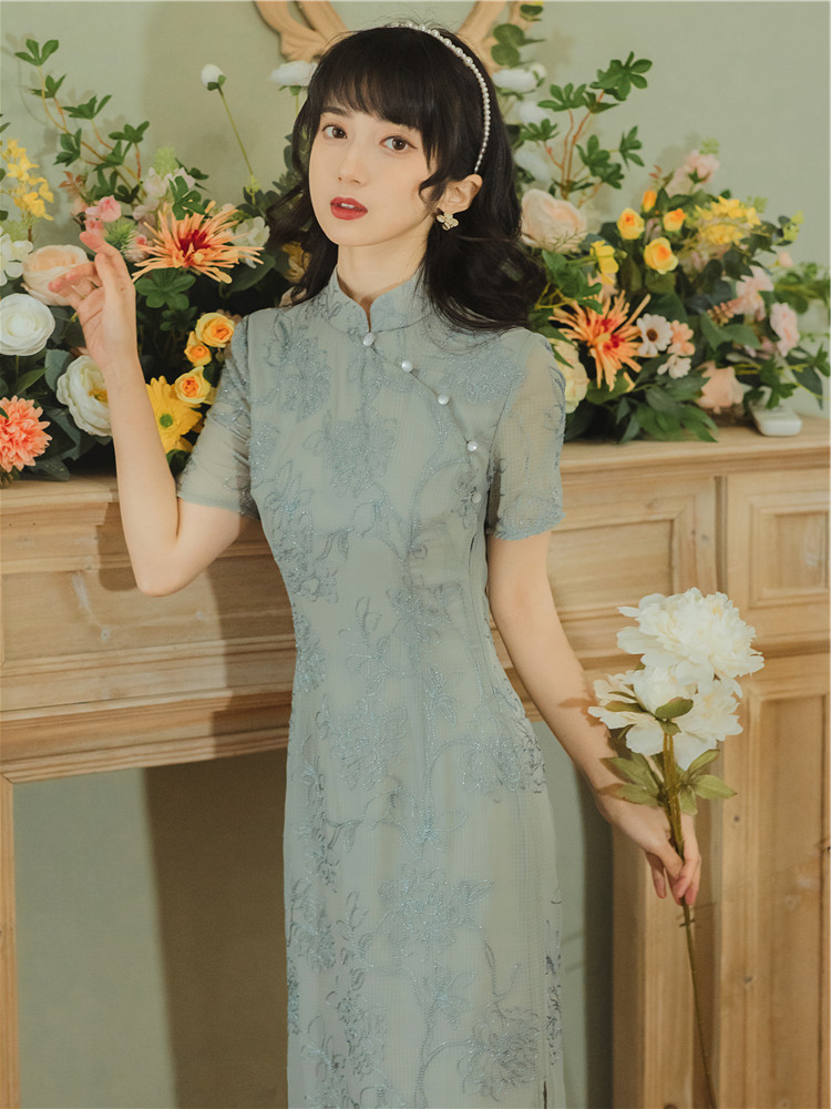 Embroidery high-end qipao young retro Republic of China Girl improved version 2021 the 2021 New summer and noble fashion