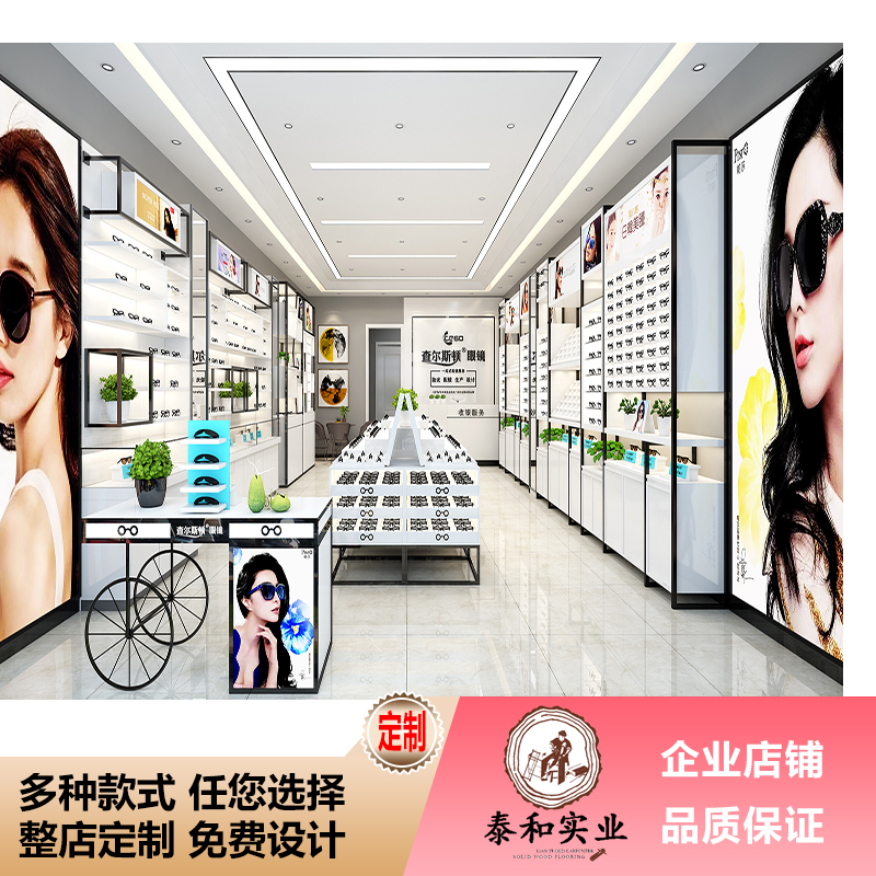 Paint-free ecological board wrought iron solid wood Nakajima paint glasses shop glass counter display showcase shelves custom direct sales