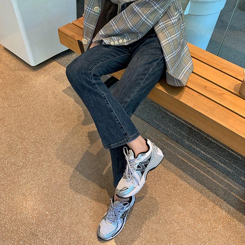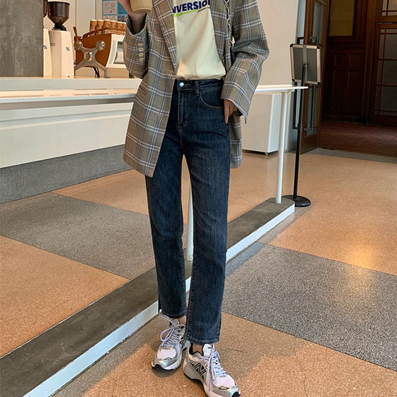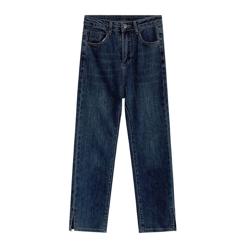 Slit stretch jeans women's high waist show thin cover crotch slightly fat girls wear large size nine-point straight pants all-match