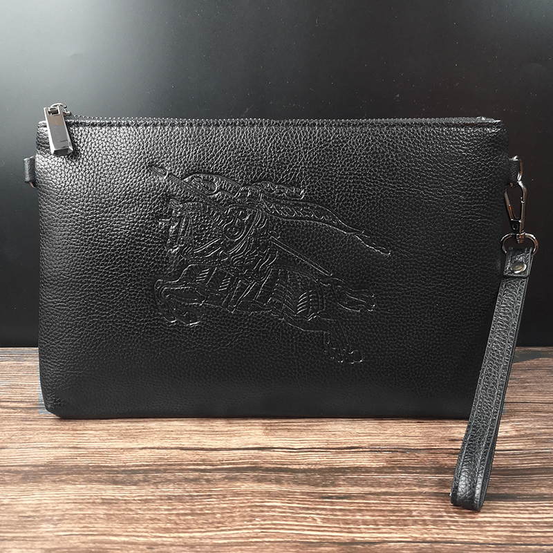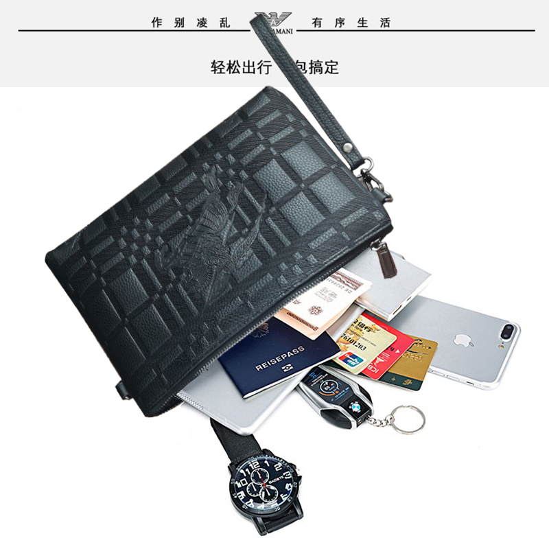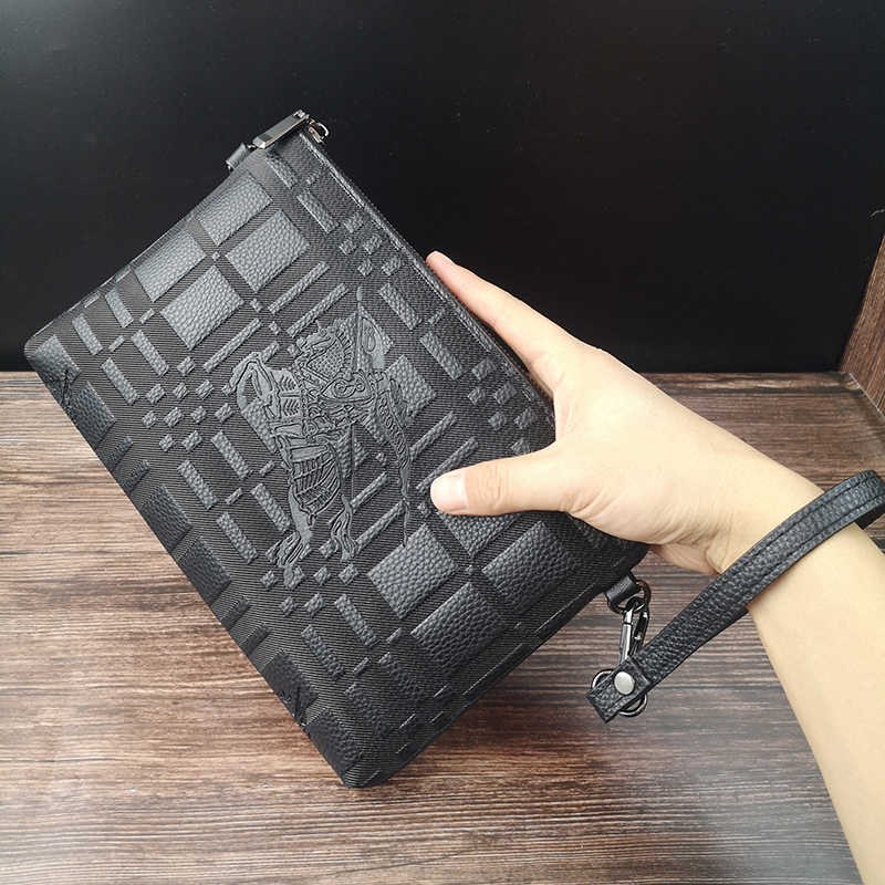 War Horse Clutch Super Cool Personality Clip Bag Soft Leather Real Wallet Black Grab Bag Large Capacity Casual Striped Handbag Men