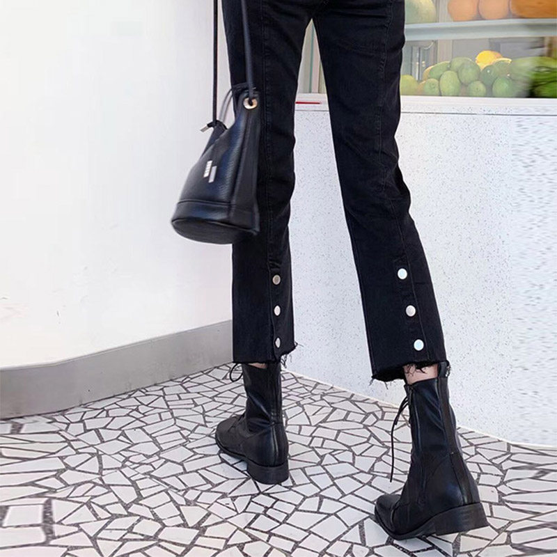 Covering the legs, thick crotch, wide pants, high waist, elastic jeans, women's large size, fat sister, slightly fat girls