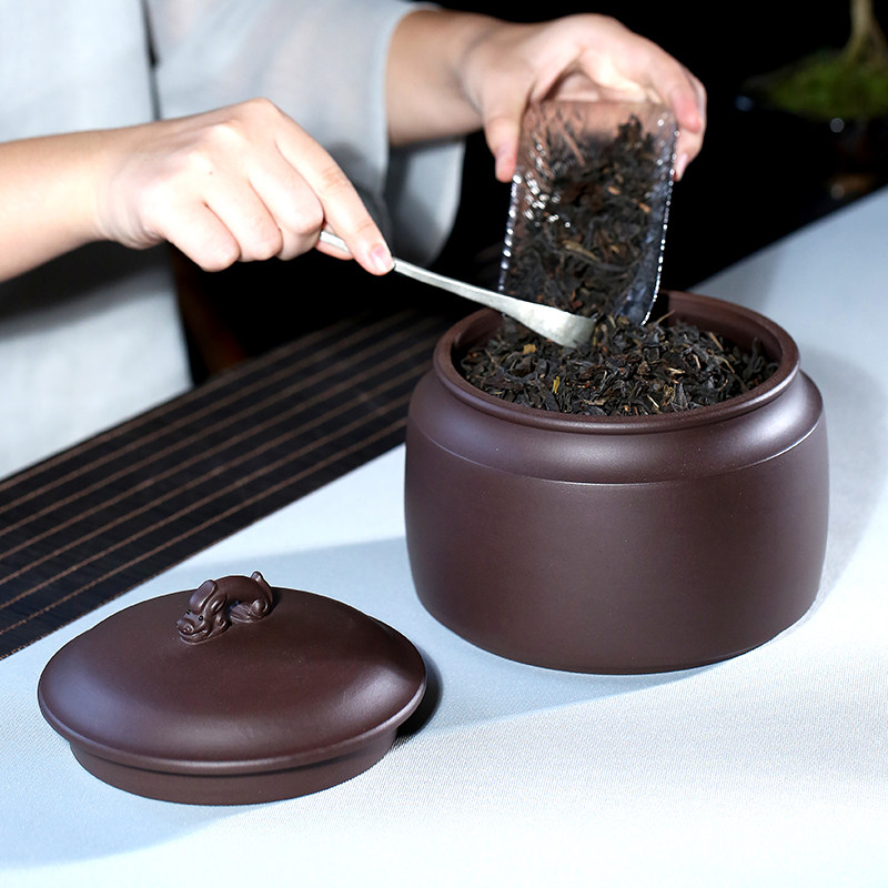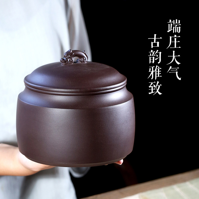 New dragon's first jar original mine home Tibetan old purple mud home small number sealed retro tea jar storing loose tea for about one catty