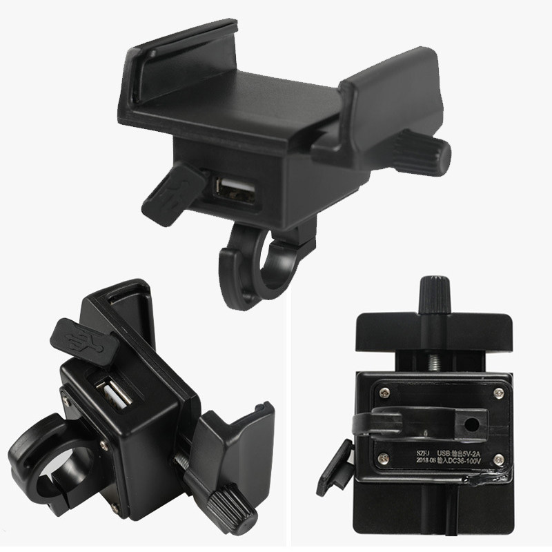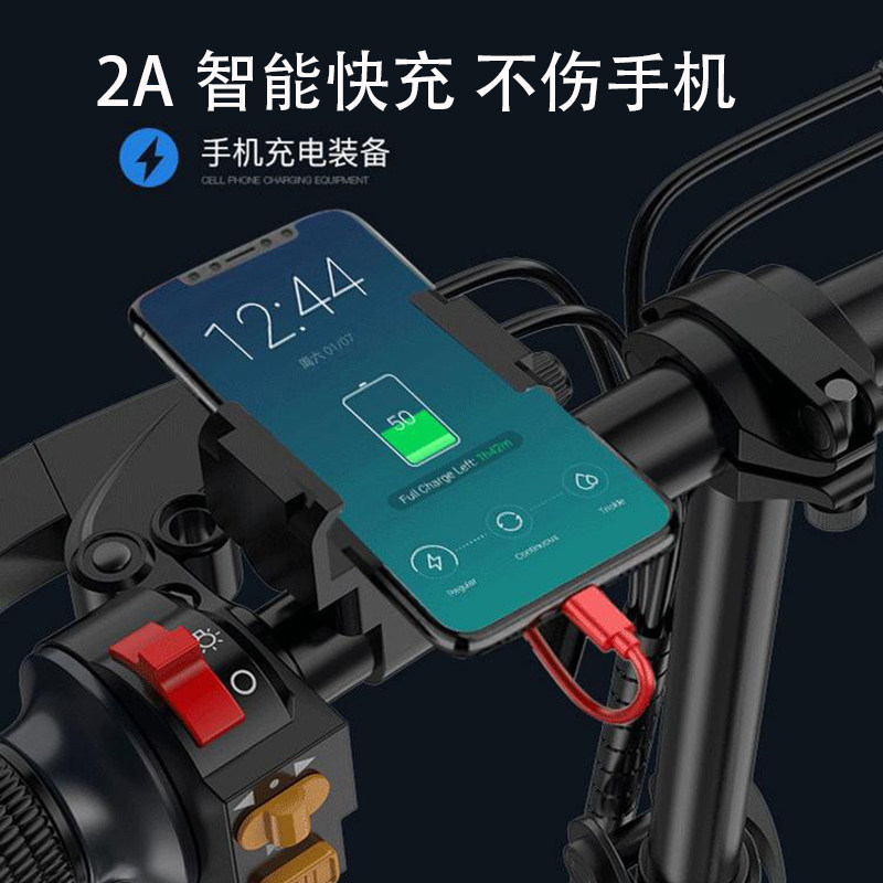 Full aluminum alloy upgrade anti-slip anti-fall 2A mobile phone fast charging bracket electric car 2A smart quick charging phone frame (line length 1 6 m) electric bike mobile phone charging bracket base one