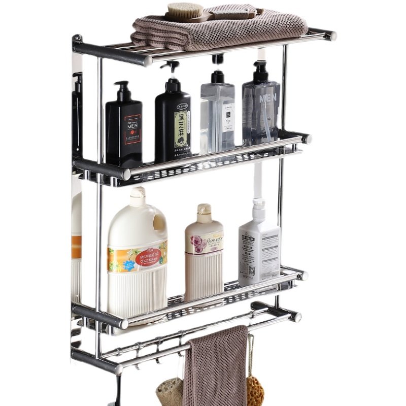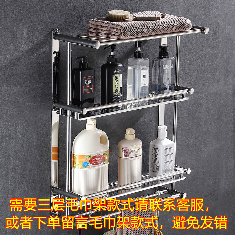 Toilet shelshelf 304 stainless steel bathroom wool towel rack toilet bathroom flush-cool room wall-mounted free of punch 2 floors-Taobao