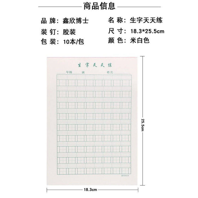 Composition paper 400 grids 10 English composition paper 10 math homework paper 10 math homework paper 10 hard pen practice every day 10 new words practice every day 10 meters