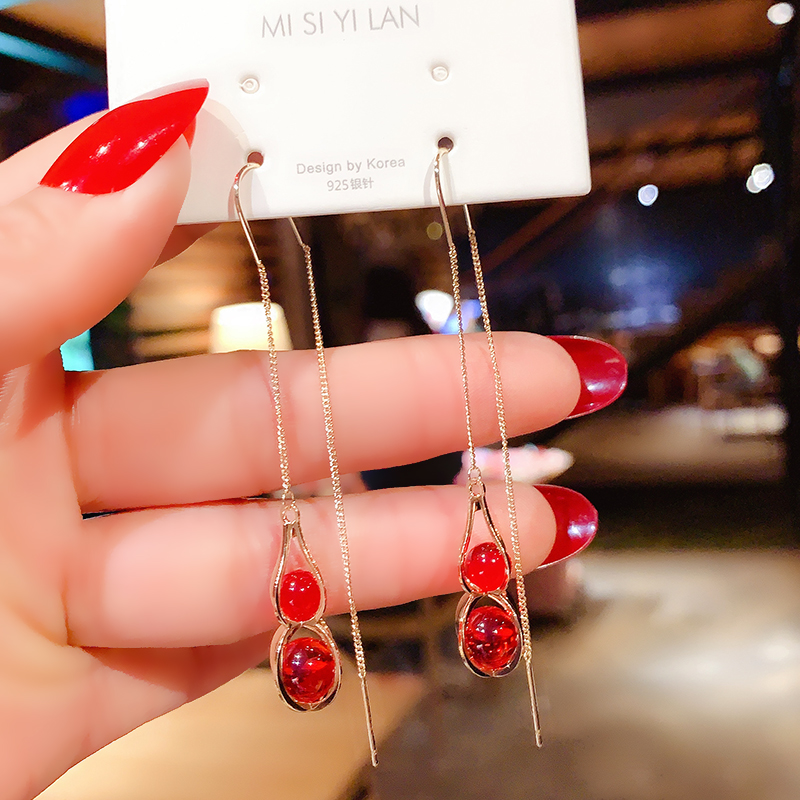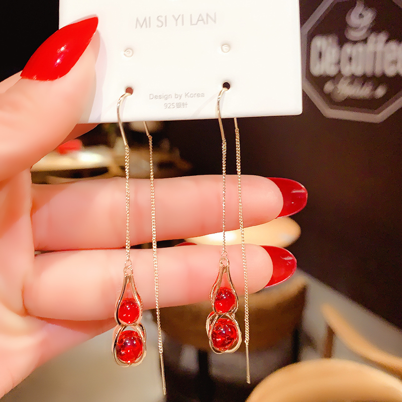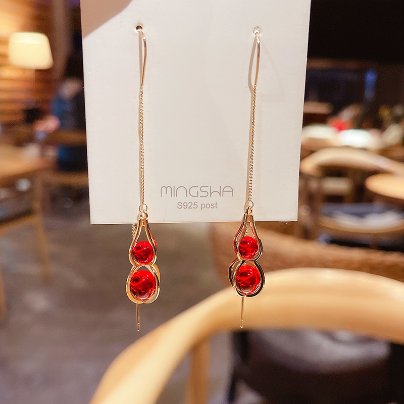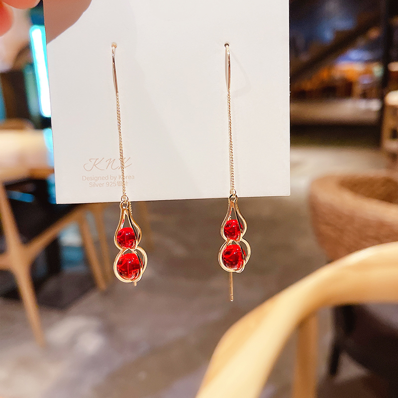 Long version gourd anti-lost earrings 2022 new trendy round face thin earrings high-end atmospheric net red explosion earrings
