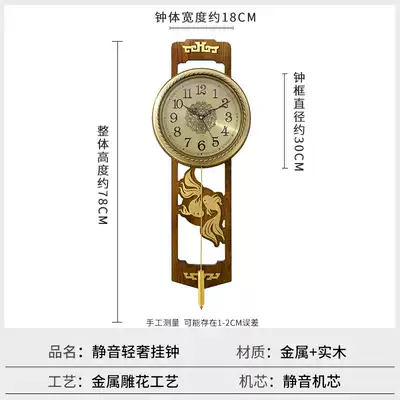 New Chinese wall clock home living room clock light luxury Chinese style solid wood wall clock atmospheric silent swing clock