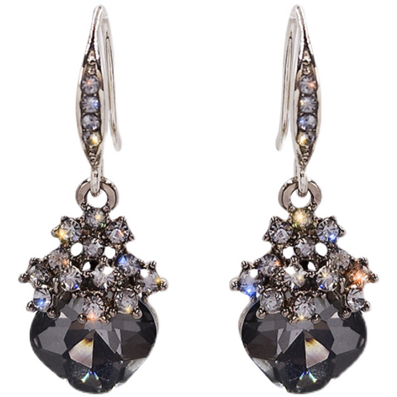 "Beautiful Treasure" BK Quick Luxury ~ Grey Crystal EarHook Earrings Women's New Korean Temperament Vintage Ear Ornaments