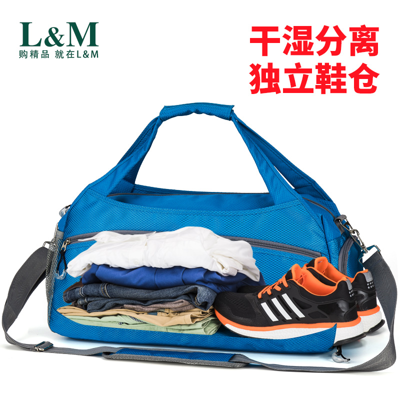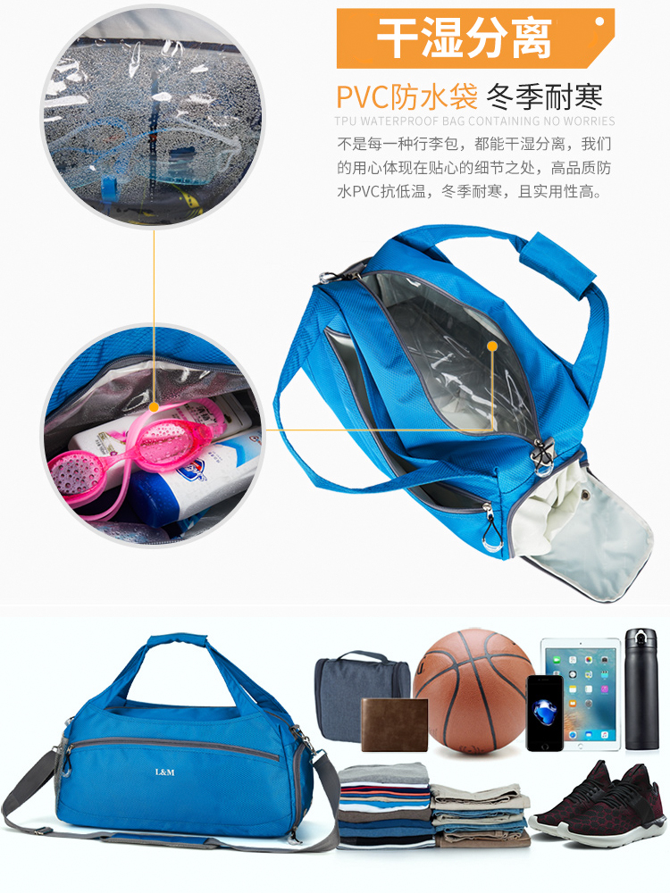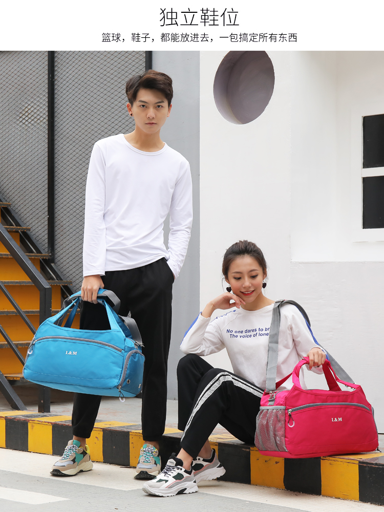 Solid color dry and wet separation fitness bag simple portable zipper bag luggage bag travel bag light sports bag