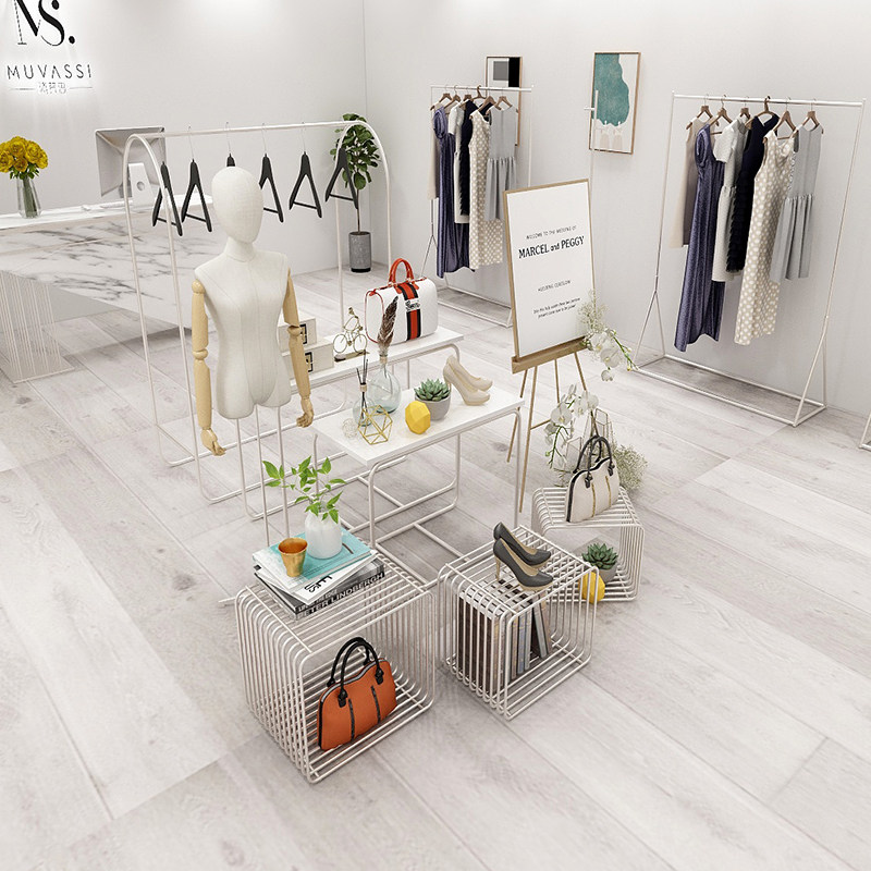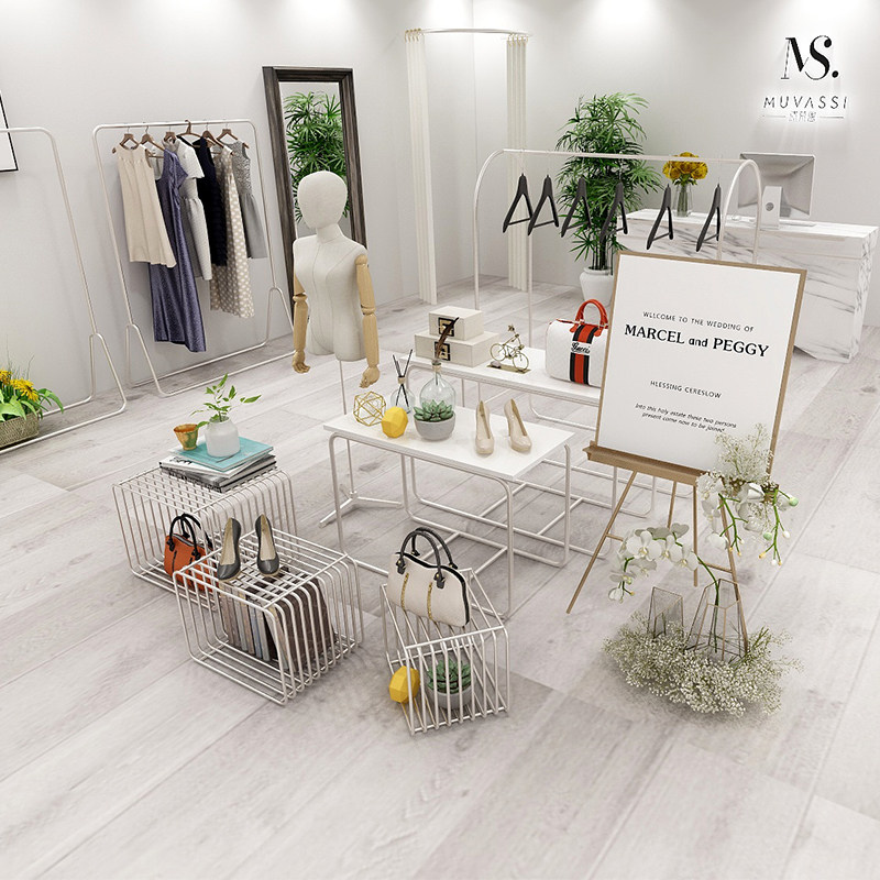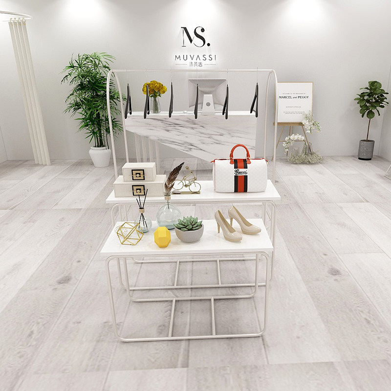 Clothing Shop Decoration High And Low Flowing Water Table Silver Shop Windows Display Middle Island Display Laying bag frame Clothing Display Table
