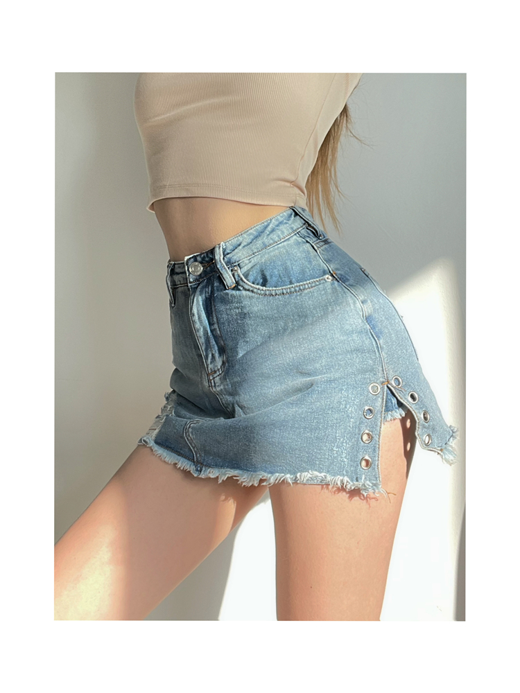 Charming Villain Sexy Summer High Waist Anti-Walking Light Wool Side Jeans Skirt Woman Doing Old Washed a word half body short dress