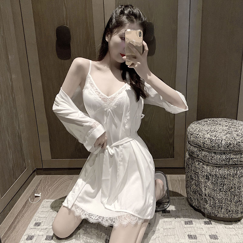 Summer thin dress dress 2022 new ice wire sexy chest pad sleepy twin suit tide