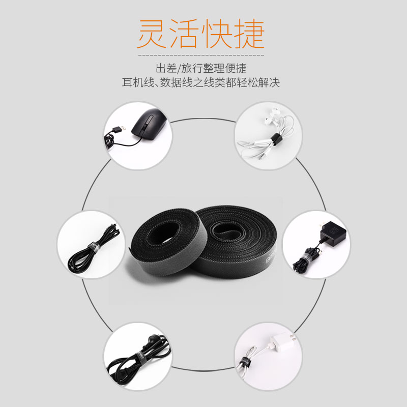 Shengwei computer cable management belt 5 meters 10 meters multi-functional cable storage fixed finishing winding belt Velcro power cord nylon cloth strap sticky buckle MP-1850