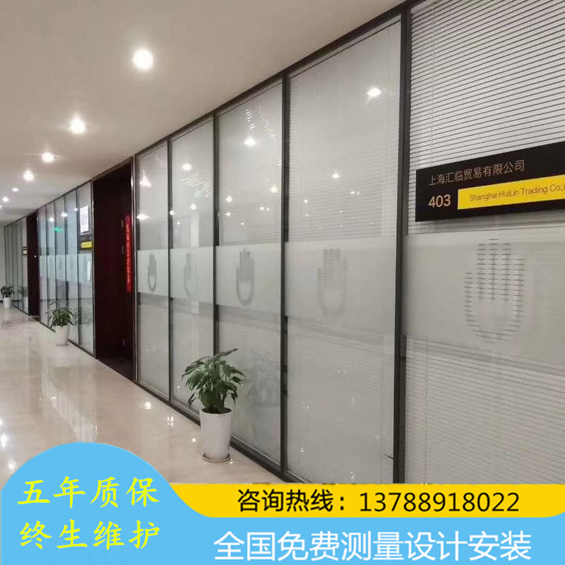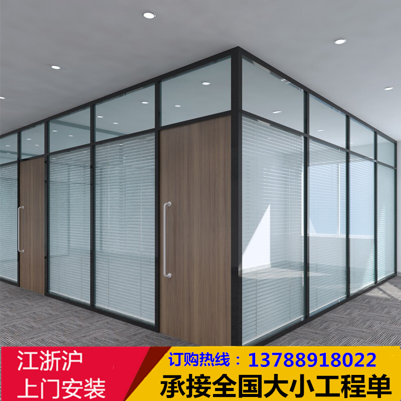 Office glass partition wall high partition tempered glass aluminum alloy hollow shutter frosted sound insulation wall screen