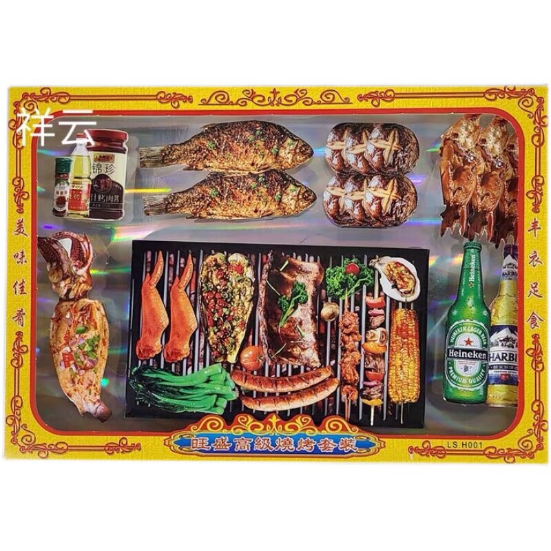 Meditation Barbecue Suit Solid Paper Zal Food Seafood Beer Eat and drink Tomb Sweeping Festival Sacrificial items burnt paper Yuanbao