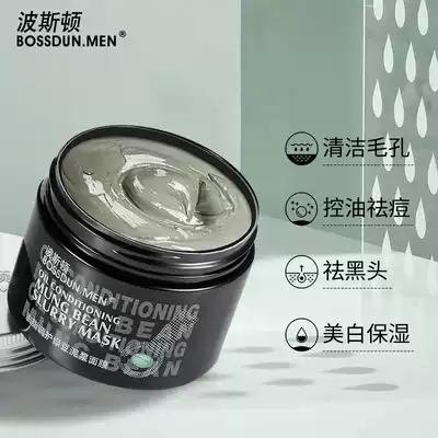 Boston mung bean mud mask smear cleaning pores oil control to blackheads soothing acne pale printing white men
