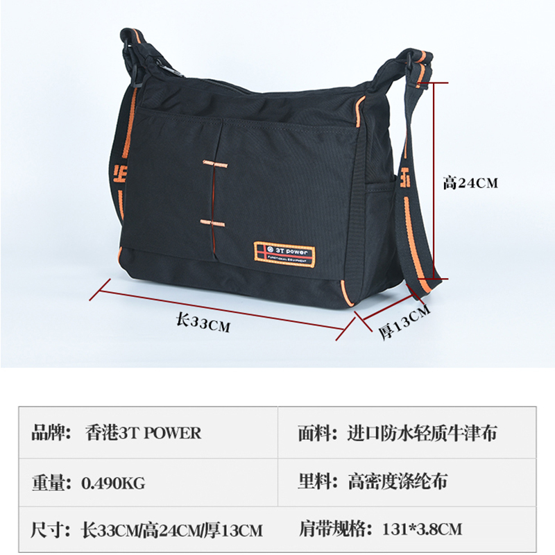 Bag shoulder messenger middle-aged men's and women's casual bag Hong Kong 3T waterproof and wear-resistant nylon cloth multi-layer practical Oxford spinning