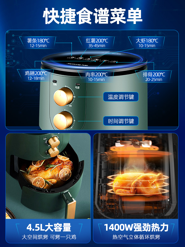 Joyoung air fryer household top ten brands large capacity official flagship store oil-free French fries smashing pot machine 4 5 liters