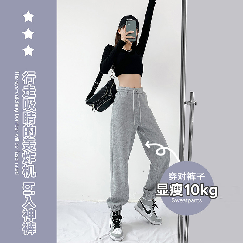 Grey Black Tracksuit Pants Women Loose Bunches Slim 2021 Spring Autumn Summer Thin New Ins Tide High Waist Casual Thick Cotton Pants