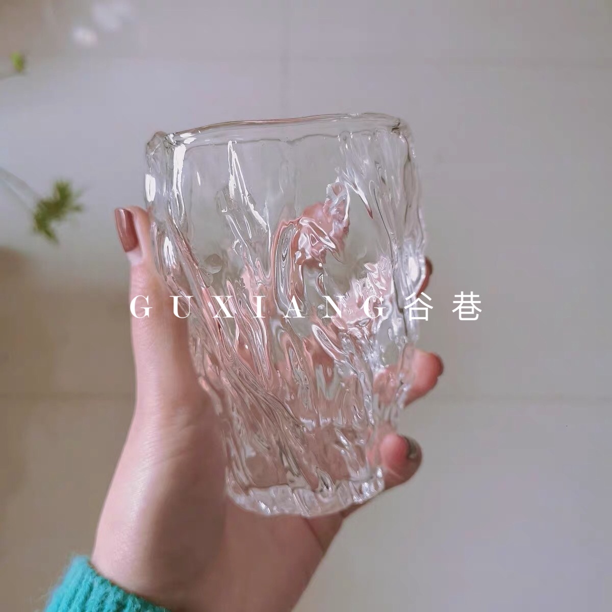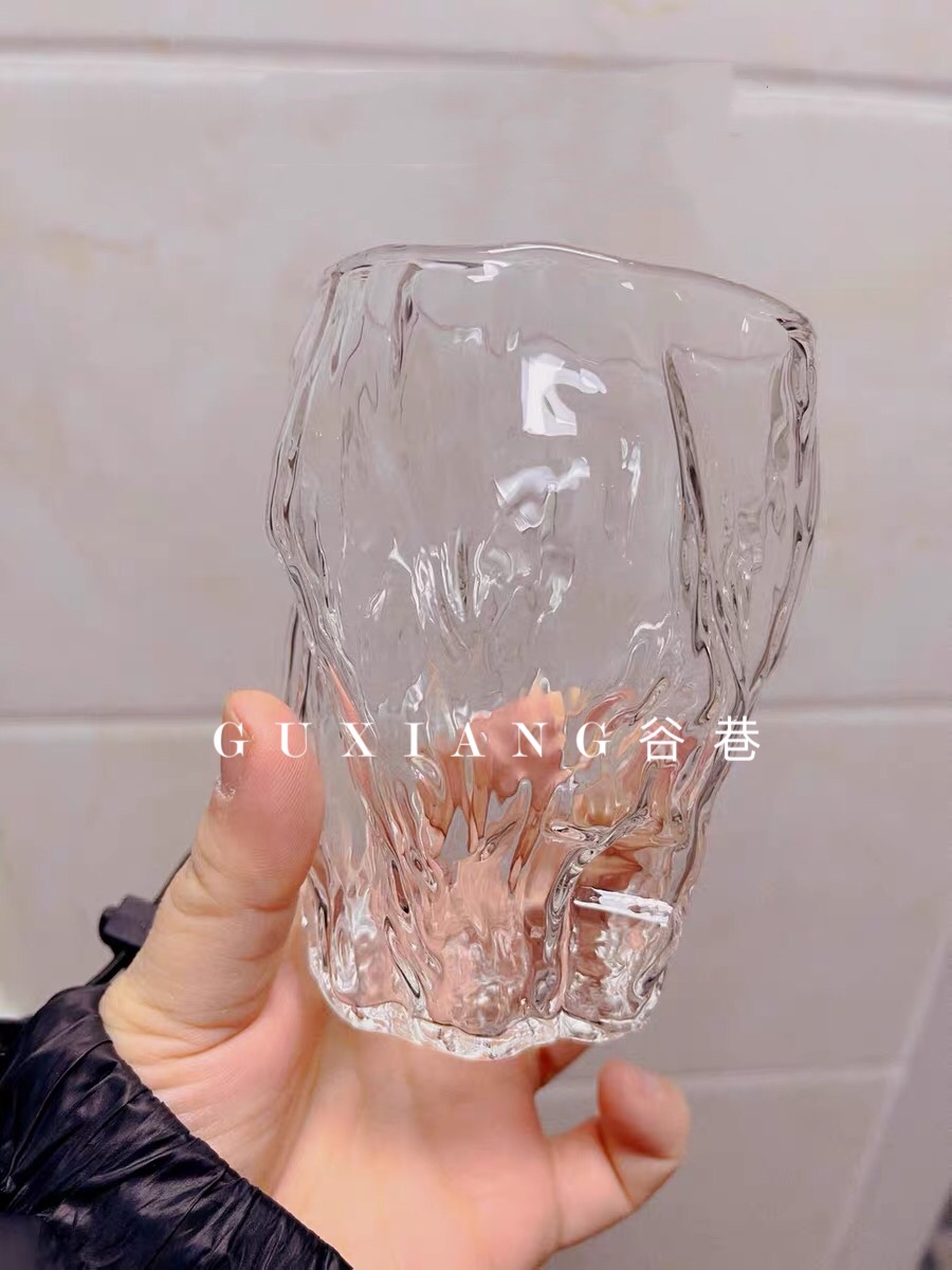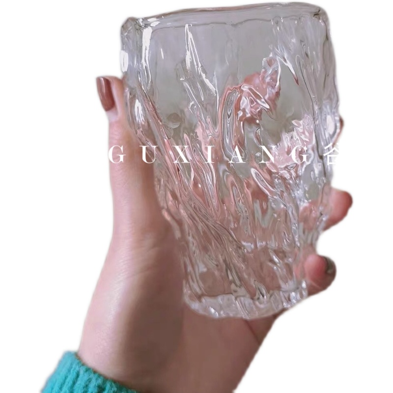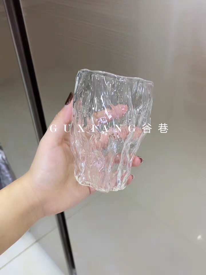 Ultra-good-looking mug trendy small crowdsourced hand-blown irregular folds glass water cup Milk Cup Glacier Cup
