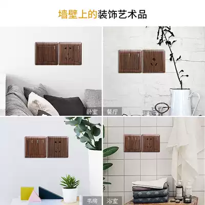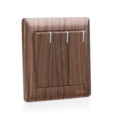Switch socket panel walnut grain color 3 Double Switch double cut retro home three open single link 86 type B & B House Henton