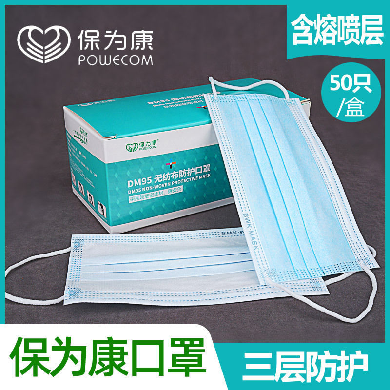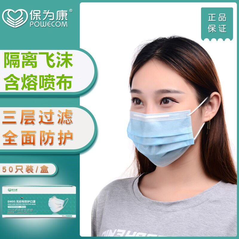 Baoweikang DM95 disposable three-layer melt-blown mouth and nose mask 50 adults thickened breathable anti-haze powder for men and women