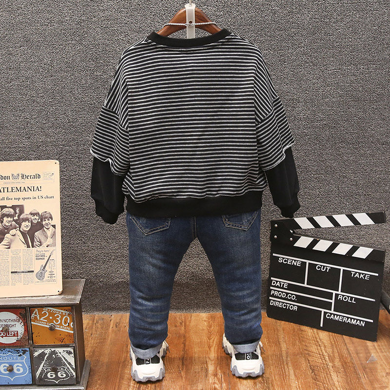 Boys sweater 2022 spring and autumn new children's stripes in the big children's leave two pieces of foreign style bottoming shirt pullover top tide
