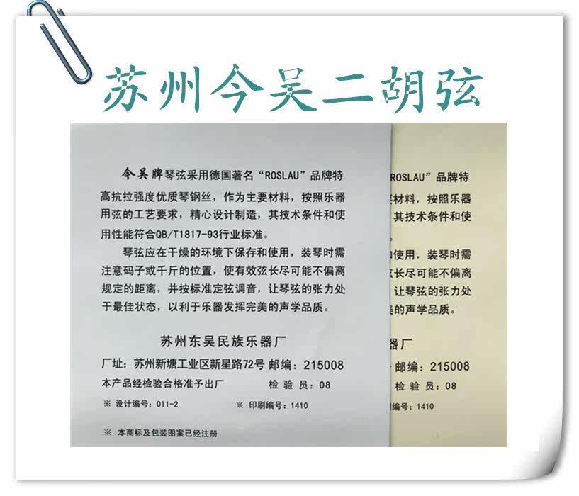 (Qinyi Jiangnan) Suzhou Jinwu Erhu String Inner String Outer String Set String Playing Professional String Accessories Straight