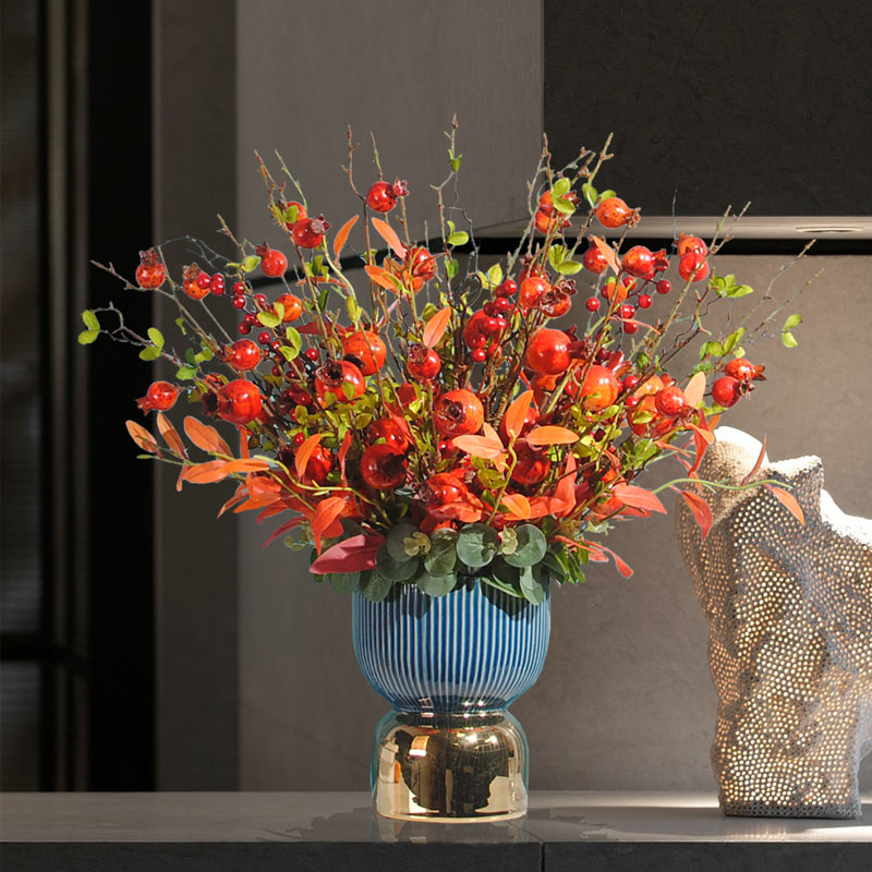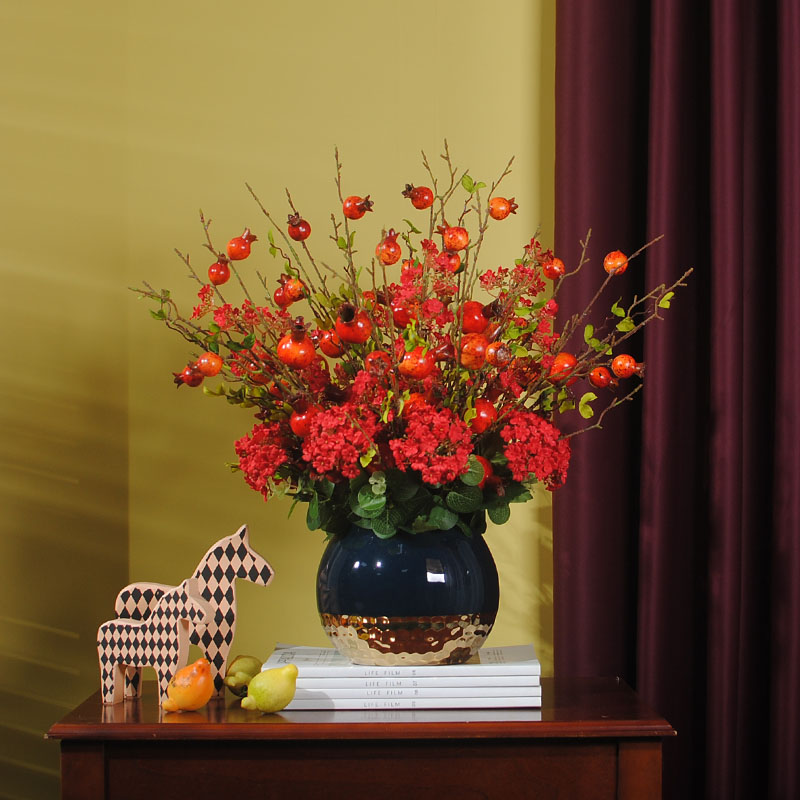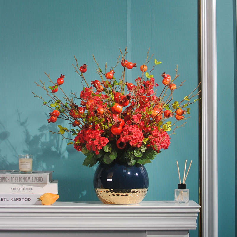 Blooming style, golden color style, blessing and fruit style, wealth and wealth, richness and wealth, prosperity style, many blessings, wealth and high luck style, big red fire with golden vase