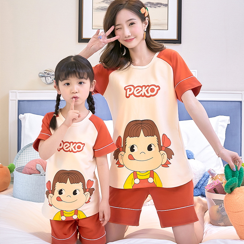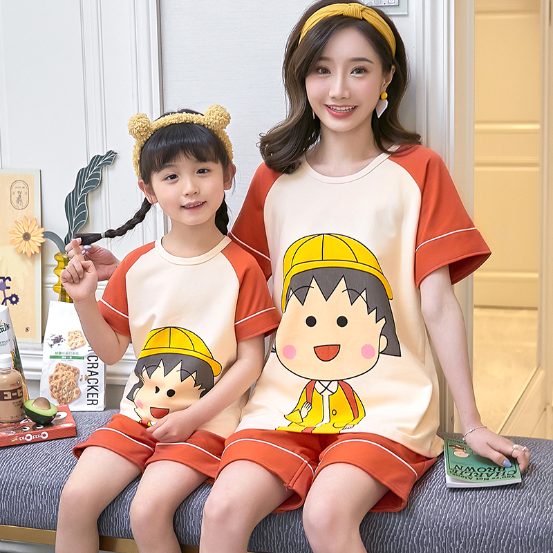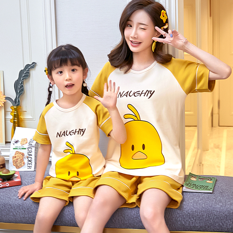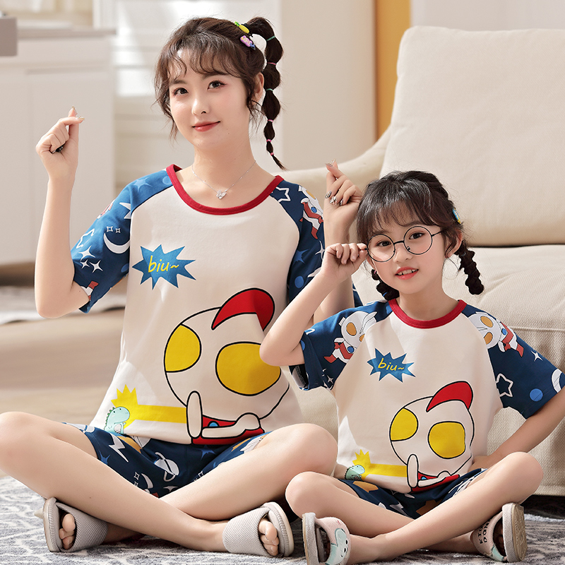 Children's pajamas spring and autumn pure cotton girl mother and child daughter household clothing summer short sleeve baby air conditioning suit thin