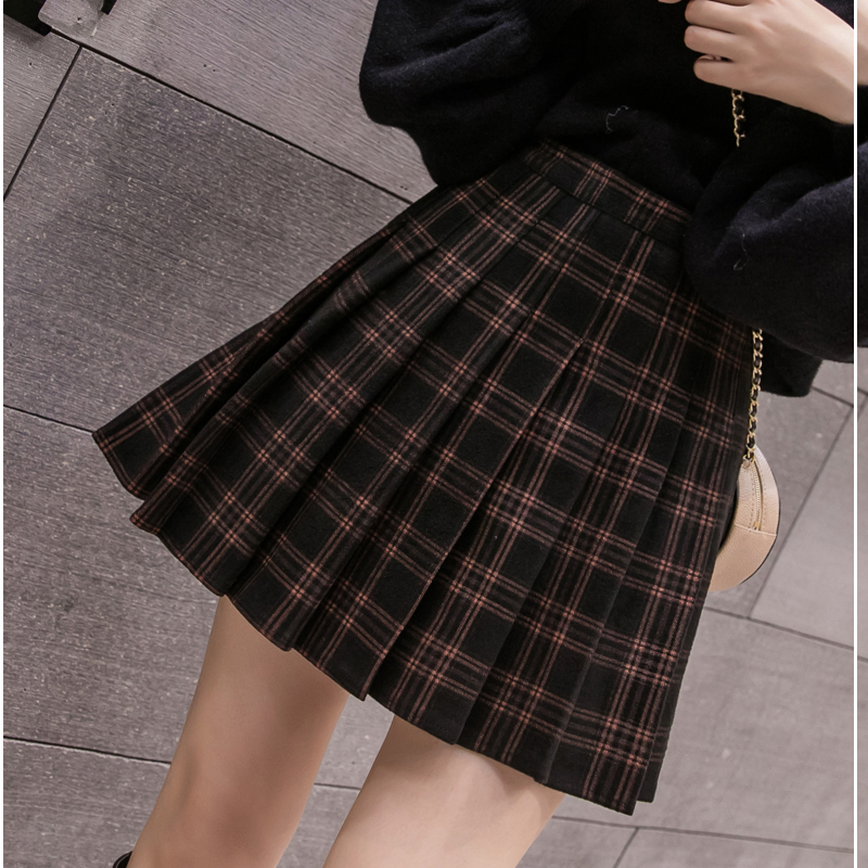 Wool Plaid jk half body dress lady autumn winter new plexu skirt a word high waist display slim size college wind short skirt