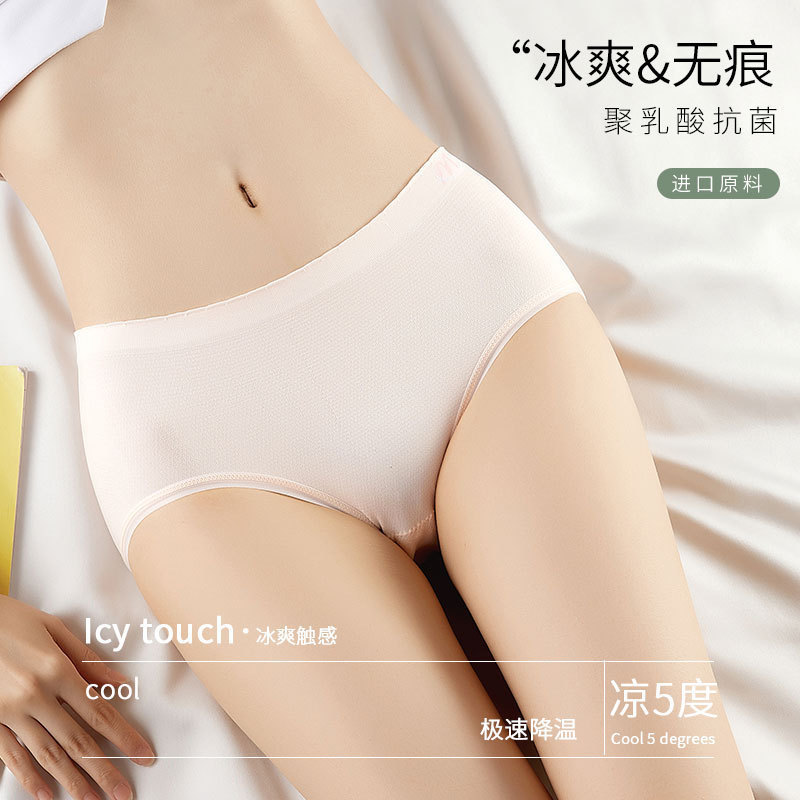 Lactic acid pants breathable antibacterial high elastic naked ammonia solid color anti-glare seamless seamless women's mask briefs thin section