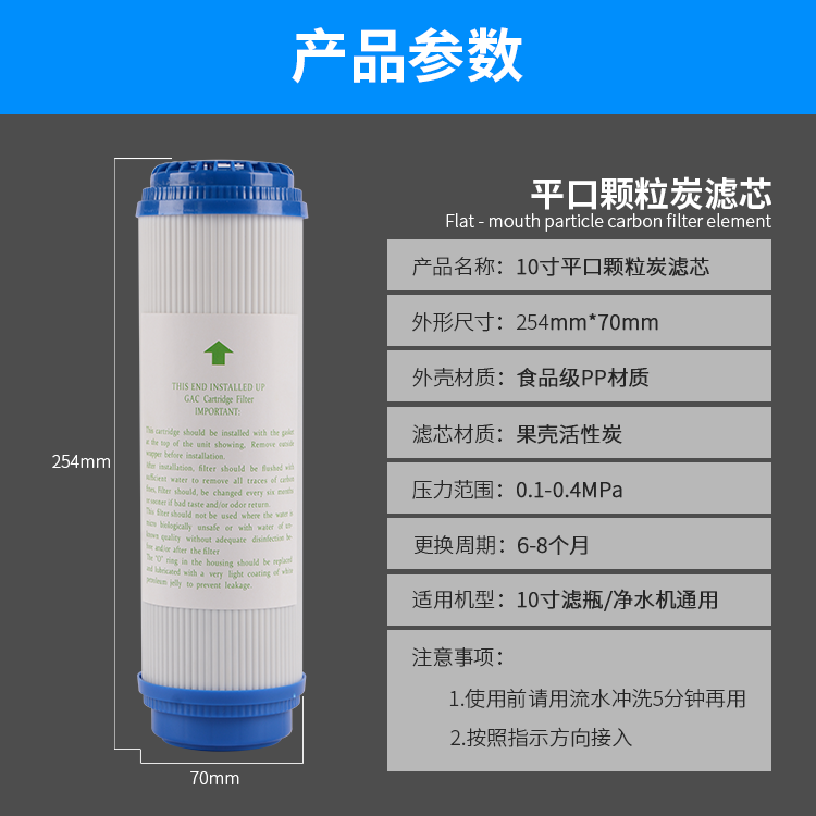 Water Purifier Filter Core Universal Home 10-inch UDF Granular Carbon Filter FLAT OPENING UNIVERSAL TERTIARY WATER PURIFIER ACCESSORIES