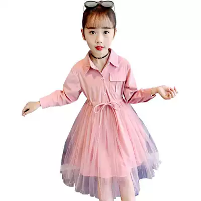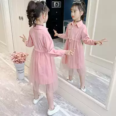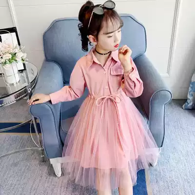 Girls ' dress spring and autumn 2021 new children's clothing Korean version of the mesh solid color medium and large virgin girl western princess skirt tide