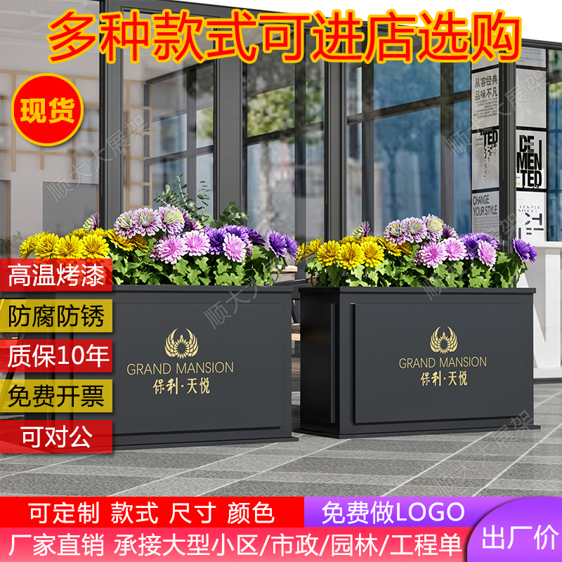Outdoor wrought iron combination simple flower box can be customized outside flower trough flower bed sales department outdoor commercial street planting box