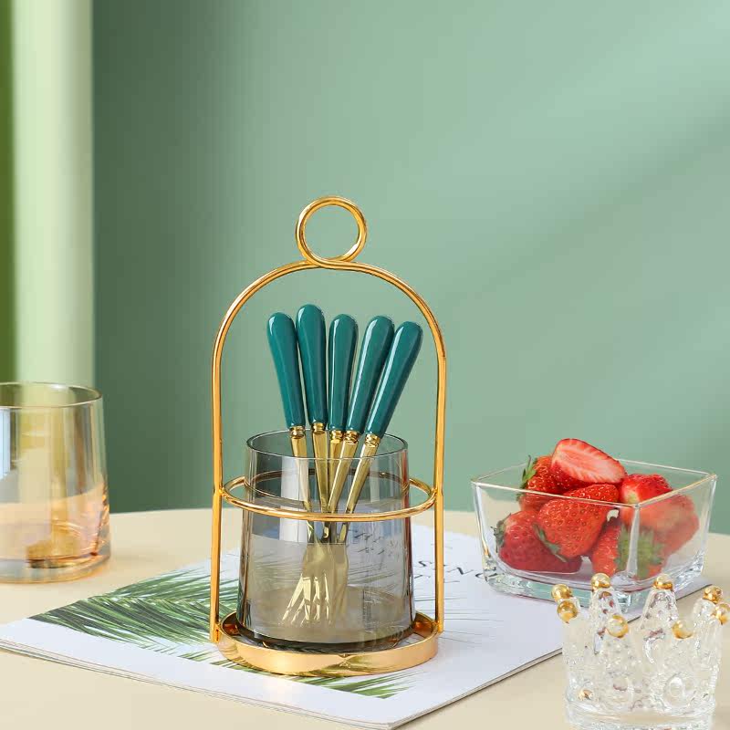Amber-Green Gold Fruit Fork Suit Tobacco Ash-Green Gold Fruit Fork Suit Amber-Leaf Fruit Fork Suit Tobacco Ash-Leaves Fruit Fork Suit Iron Art Gold Shelf Amber Glass Cup Iron Art Gold Shelf