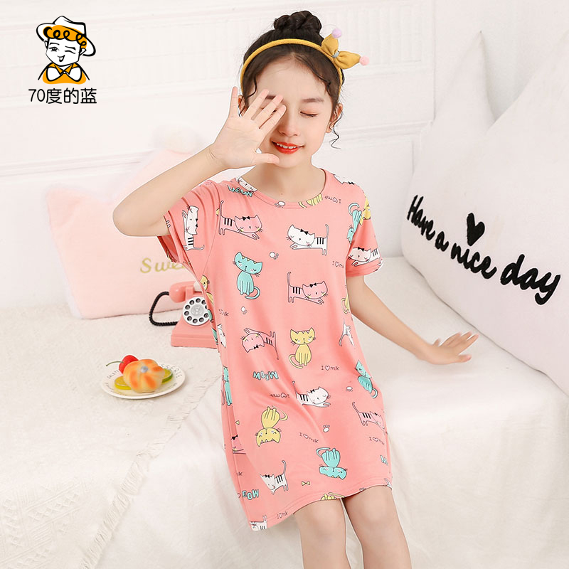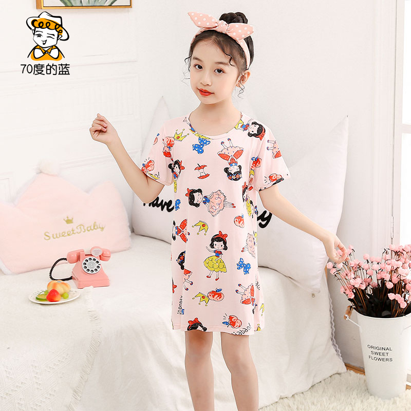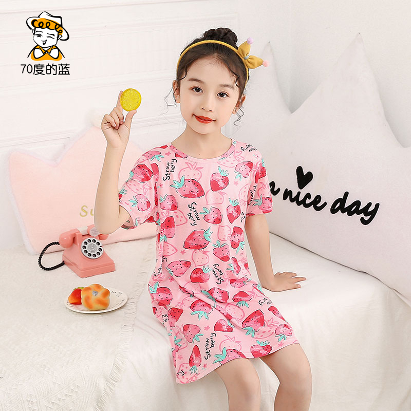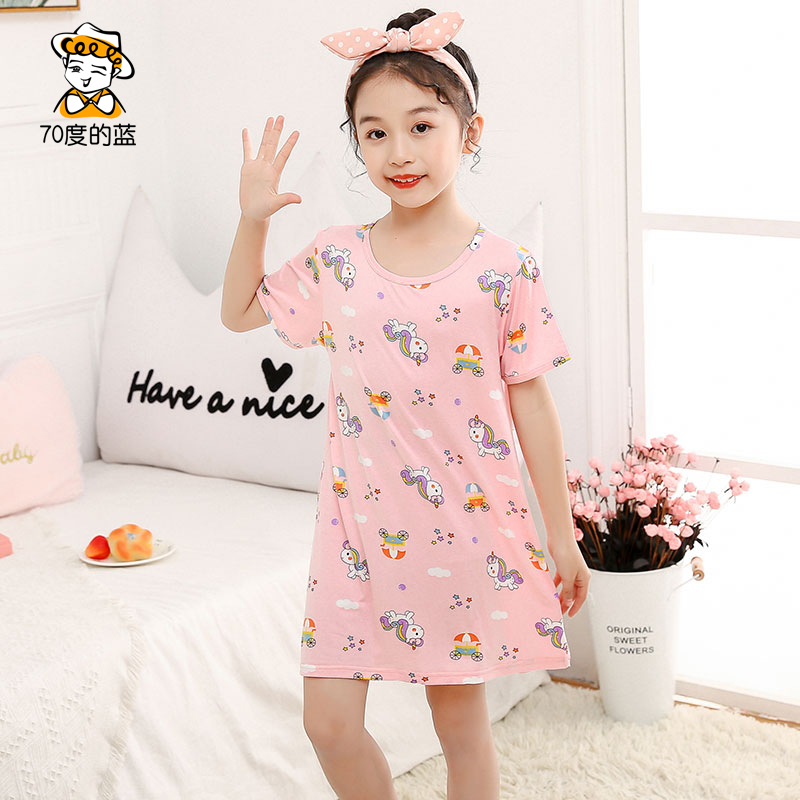 Girl Sleeping Dress Ice Silk Short Sleeve Princess Wind Summer Children's Home Clothes Slim Fit Cool Girl Sleepwear Super Cute Boy Clothing