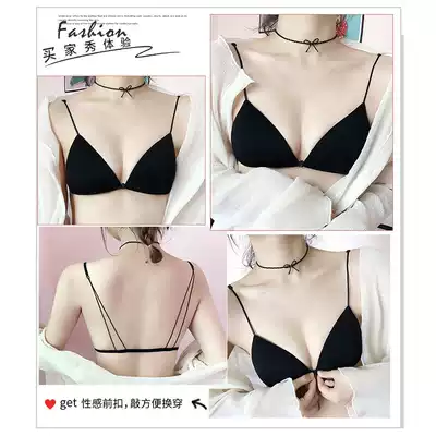 New sexy underwear women's small breasts gather ultra-thin French triangle cup beauty back sling front buckle bra set